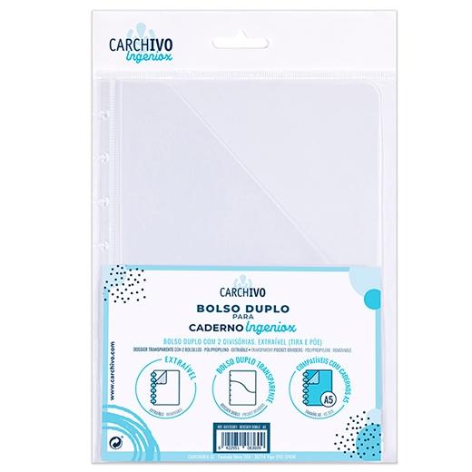 Dossier doble extraíble A4 y A5 para cuadernos Ingeniox con 2 bolsillos polipropileno transparente.